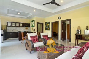 The villa is located in a dead end for cars. It is in an area where you still have the Tempo Dulu feel.