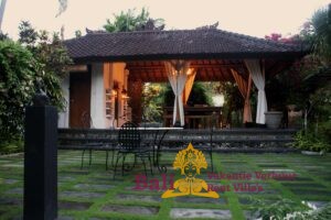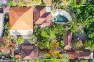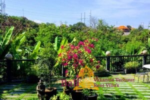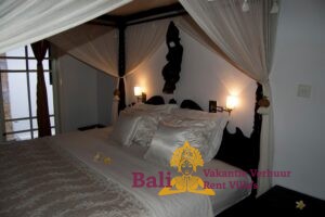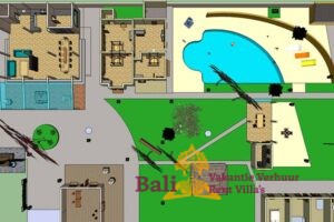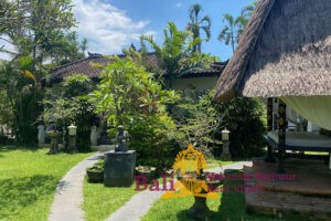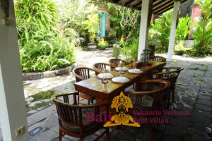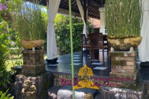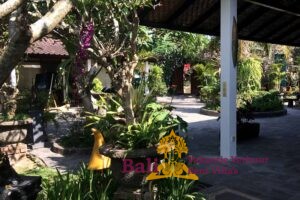 The Ti-Art Villa has an artistically decorated open Living (140 m2) with a kitchen, a large dining table for 12 people, toilet, sink and a bedroom with two single beds. Adjoining a covered terrace (60 m2) with a table and 8 chairs. The other 3 bedrooms – each with a double bed – and two bathrooms are located in the adjacent sleeping house. The closed fully equipped kitchen with covered terrace is also separate with a view of the garden and the swimming pool. The swimming pool is kidney-shaped (5 x 8.5 meters) and has stairs and a maximum depth of 1.60 meters. Seat cushions, mattresses and towels are provided. From Monday to Saturday from 8 am to 4 pm our head housekeeper Kadek is present, she takes care of the cleaning and maintenance of the villa. Cooking service is generally not provided, though it can occasionally be arranged upon request, with guests covering the cost of the ingredients. Private driver Agous is available on call for a fee. Agous has been organizing trips and excursions for 20 years and will show you the real Bali. There are also four free bicycles at the villa with which guests can explore Sanur and the surrounding area.