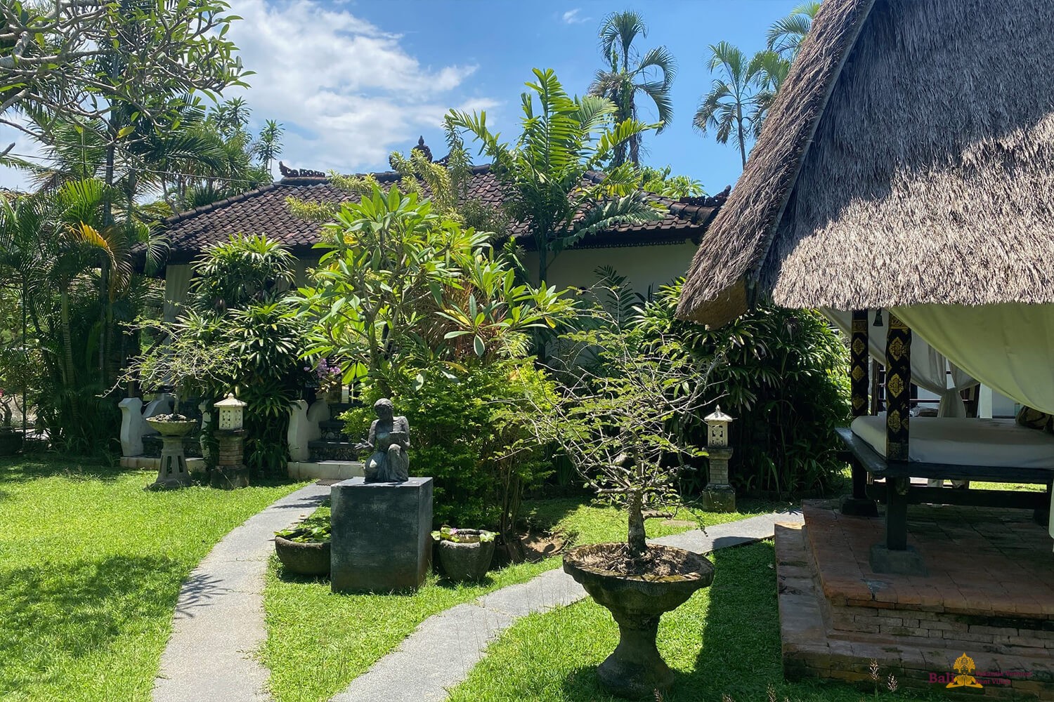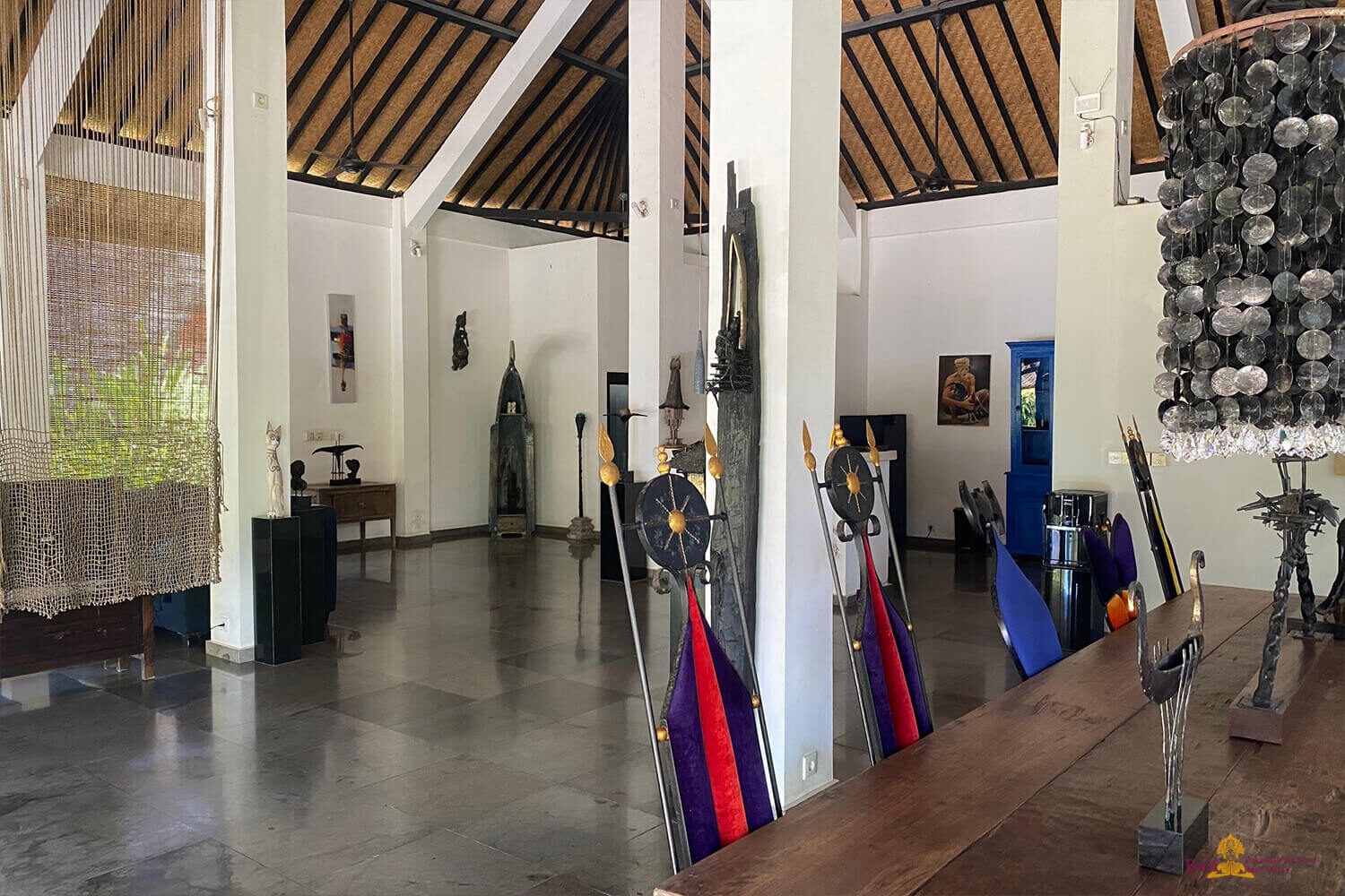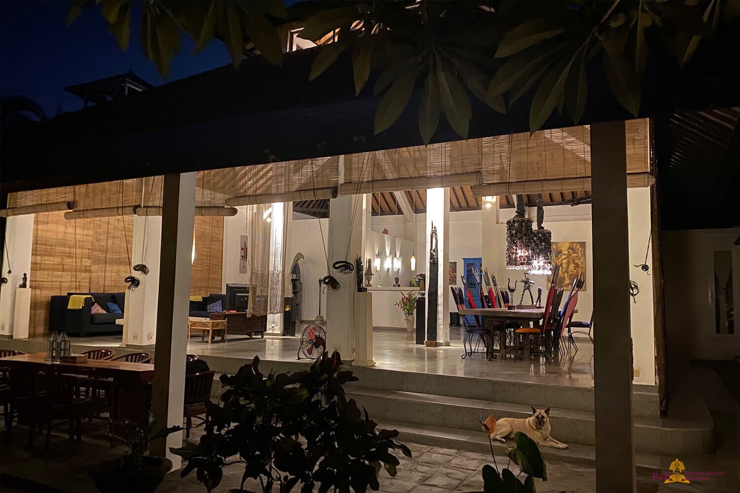 The Ti-Art Villa is a spacious luxury contemporary villa with traditional Balinese elements and several buildings: Living, sleeping house, open and covered kitchen, bale benong, studio and staff house. The villa is located on the quiet authentic Balinese jalan Padang Galak outside the tourist crowds, a 7-10 minute drive from the center of Sanur and about 400 meters from the mysterious abandoned Taman Festival Park and the beach of Padang Galak. This beach is often used for ceremonies and is known for kite festivals in July and August. The sea can be rough here and is not suitable for swimming, but a little further south near the center of Sanur the sea is calm due to the presence of a sandbank. In the other direction, within walking distance of the villa, is the Margot Riverside restaurant with both Asian and Western dishes. The Ti-Art Villa has a private area of ​​2300 m2 with a uniquely landscaped tropical sculpture garden, a swimming pool and a “Bale Benong” for reading or relaxing. Sculptor Tineke Vermeer spent 12 years alternating between 3 months in the Ti-Art Villa in Bali and 3 months in the Netherlands. During that time she created the current Ti-Art Villa.