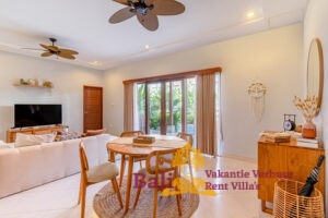 Een Bohemian style inrichting geeft deze villa een knus karakter. De woonkamer en keuken zijn van alle gemakken en benodigheden voorzien. Op de heerlijke sofa onderuitgezakt genieten van uw favoriete serie op Netflix. Een smakelijke maaltijd bereiden in de ingerichte keuken. Alles in huis voor dat “welkom thuis” gevoel.