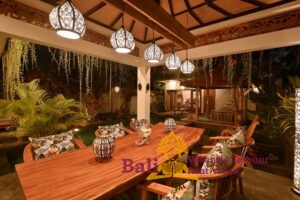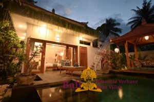 Deze nieuwe vakantievilla werd pas in juli 2022 geopend. Het is een mix van moderne architectuur en klassiek Bali design. De woon- en eetruimte, open naar het privézwembad, vormt het belangrijkste deel van het grote huis. Het gehele huis is ingericht met hoogwaardige, natuurlijke materialen van Indonesische oorsprong. De vloer is gemaakt van gepolijste natuursteentegels (Javaans andesiet) in het gehele huis. Een groot deel van het interieur is op maat gemaakt en werd gemaakt door lokale ambachtslieden volgens onze ideeën en deels voorzien van handgemaakte houtsnijwerk. Geniet van de tropische lichtheid van de combinatie met Indonesisch vakmanschap.